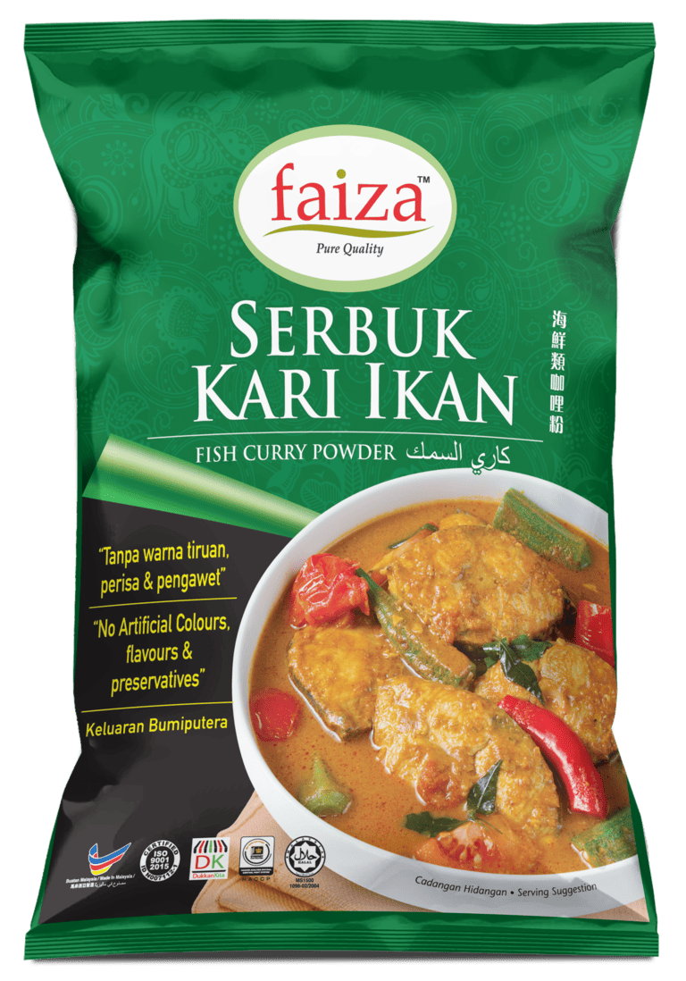 HAS UNIQUE CURRY TASTE AND STRONG AROMA. FAIZA FISH CURRY POWDER ENHANCE THE FLAVOUR AND AROMA OF THE CURRY DISHES.SUITABLE FOR COOKING OF ALL KINDS OF FISH AND SEAFOOD. ALSO SUITABLE FOR VEGETABLE CURRY.